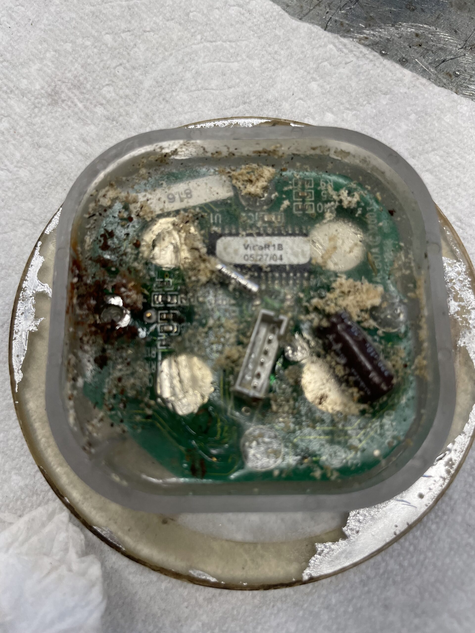 The auxiliary pumps on my old California Spa (from 2005) stopped working one after the other over a few (winter) months. I decided to dismantle the control panels that are in the spa. They both seemed water logged and the touch surfaces were all cracked.